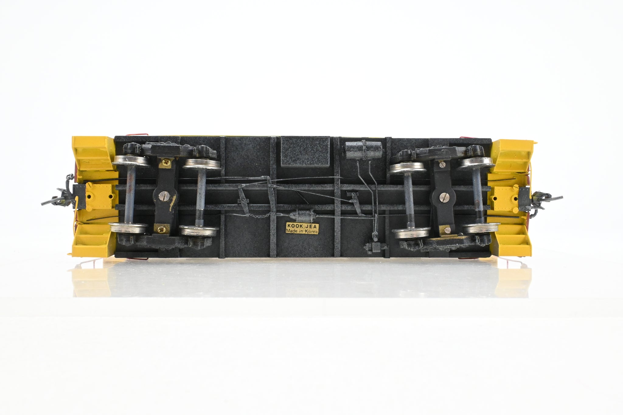 Oriental Limited Model built by Kookjea Precision in Korea. Box shows some wear with scuffing on all edges and corners. No spare parts included. Custom paint work is very good with minimal wear. Glazing installed and finished with very light weathering to the trucks, underframe, and roof. Please note: Smoke stack appears to be bent - see photos.
