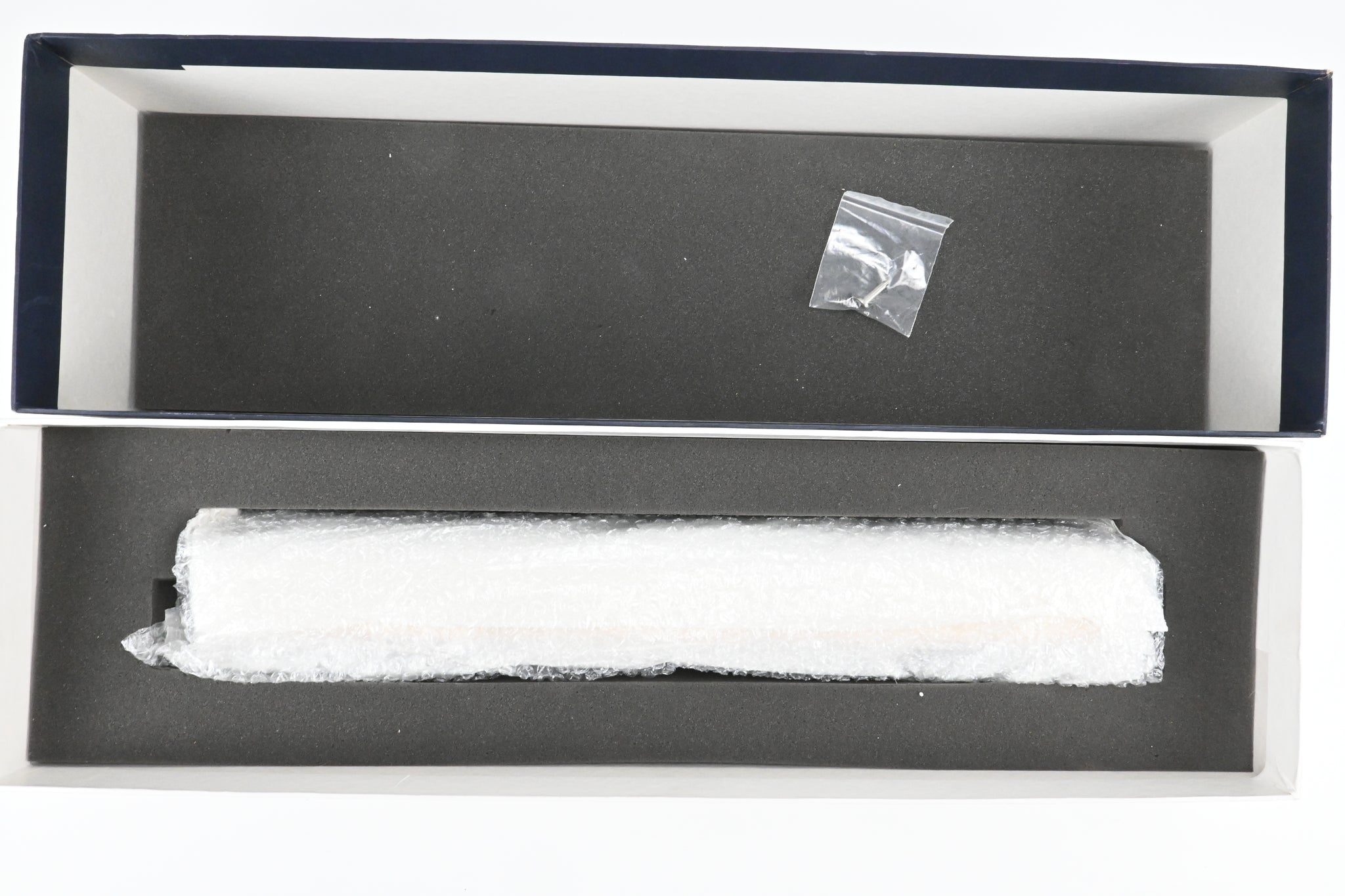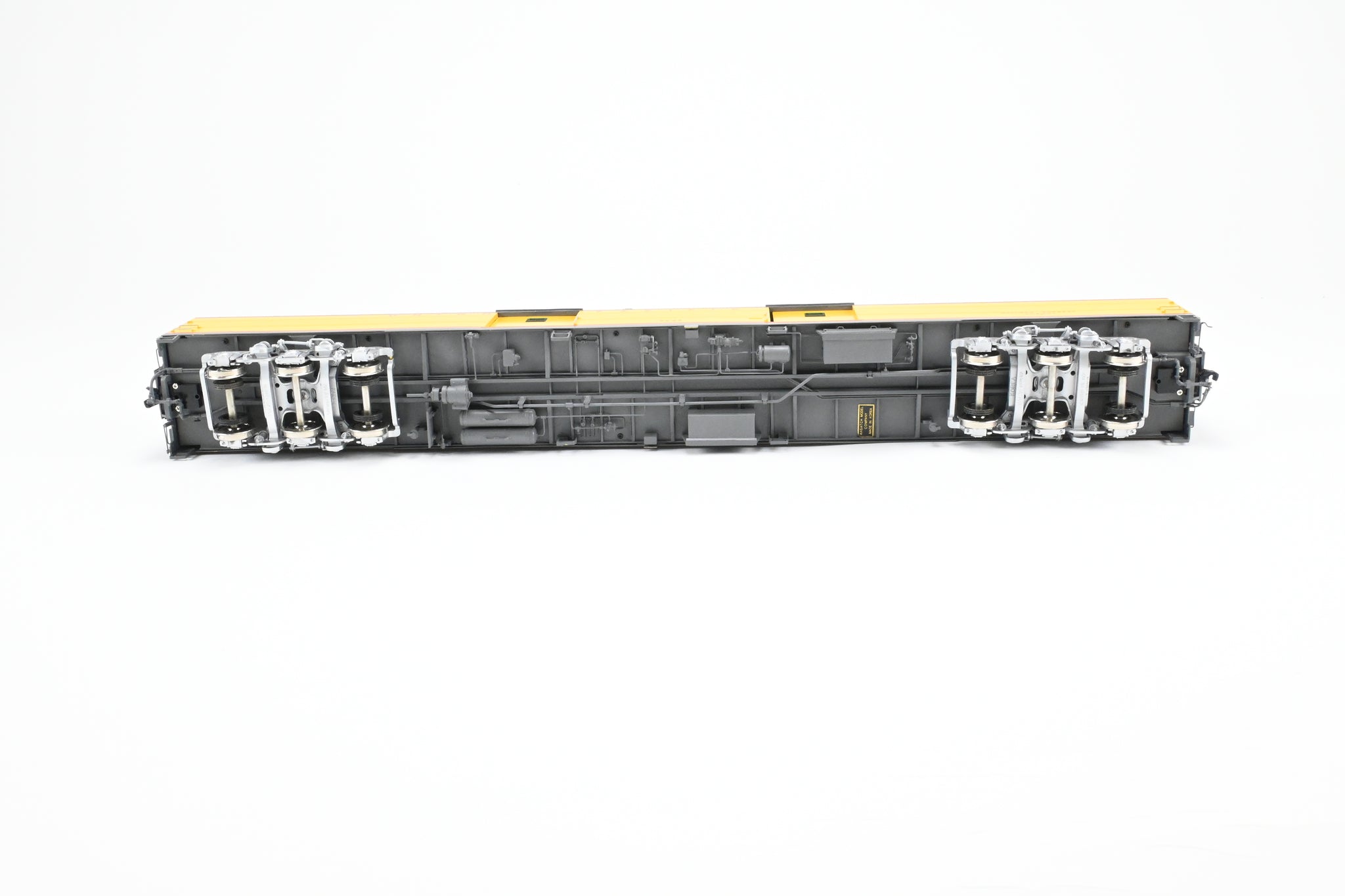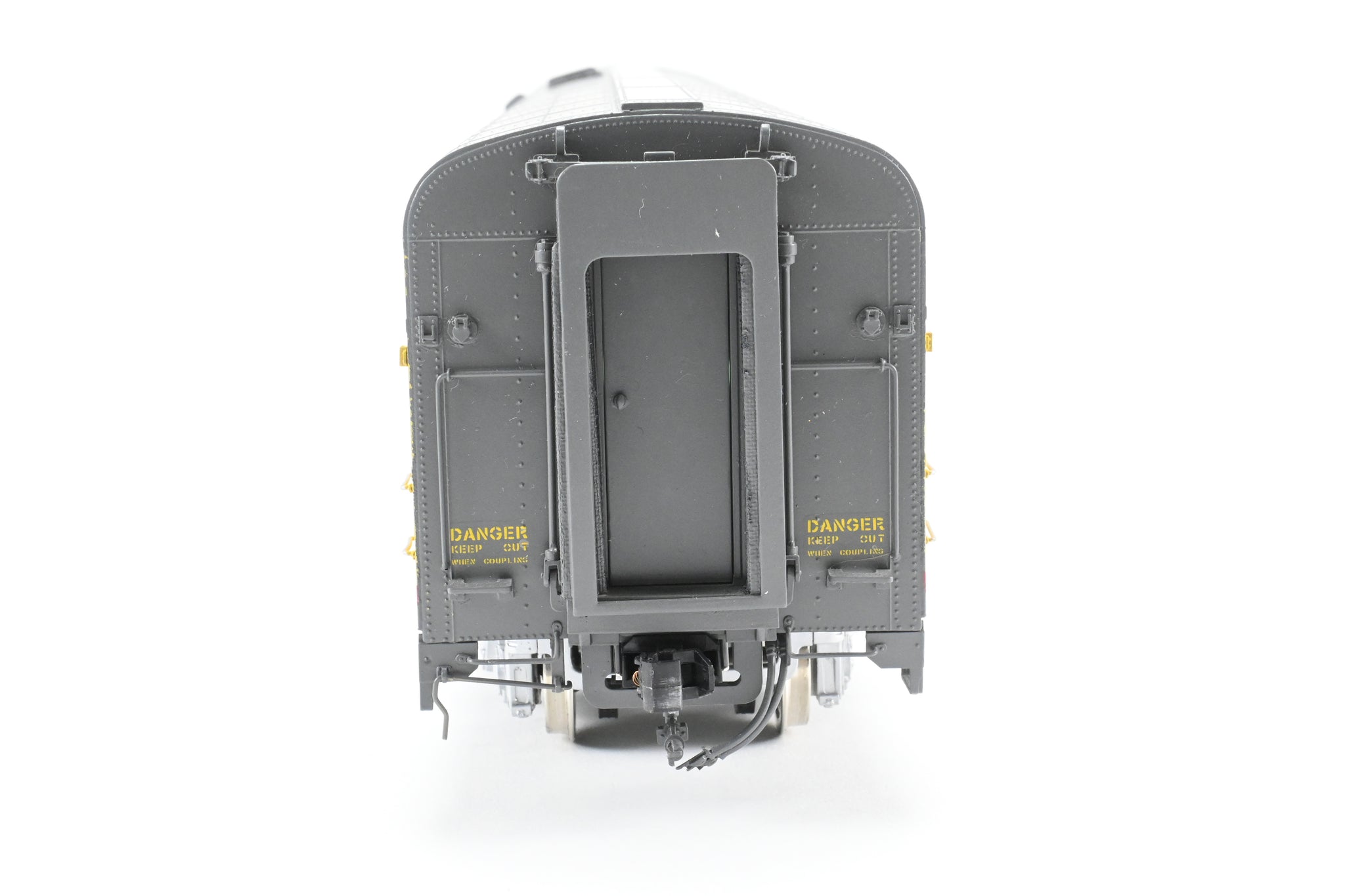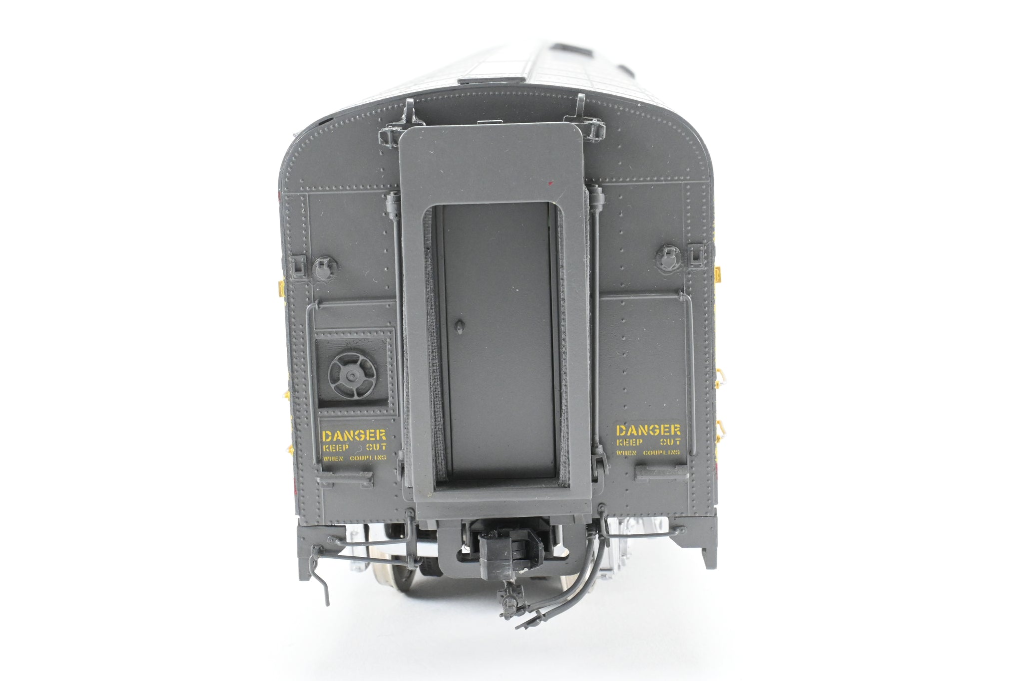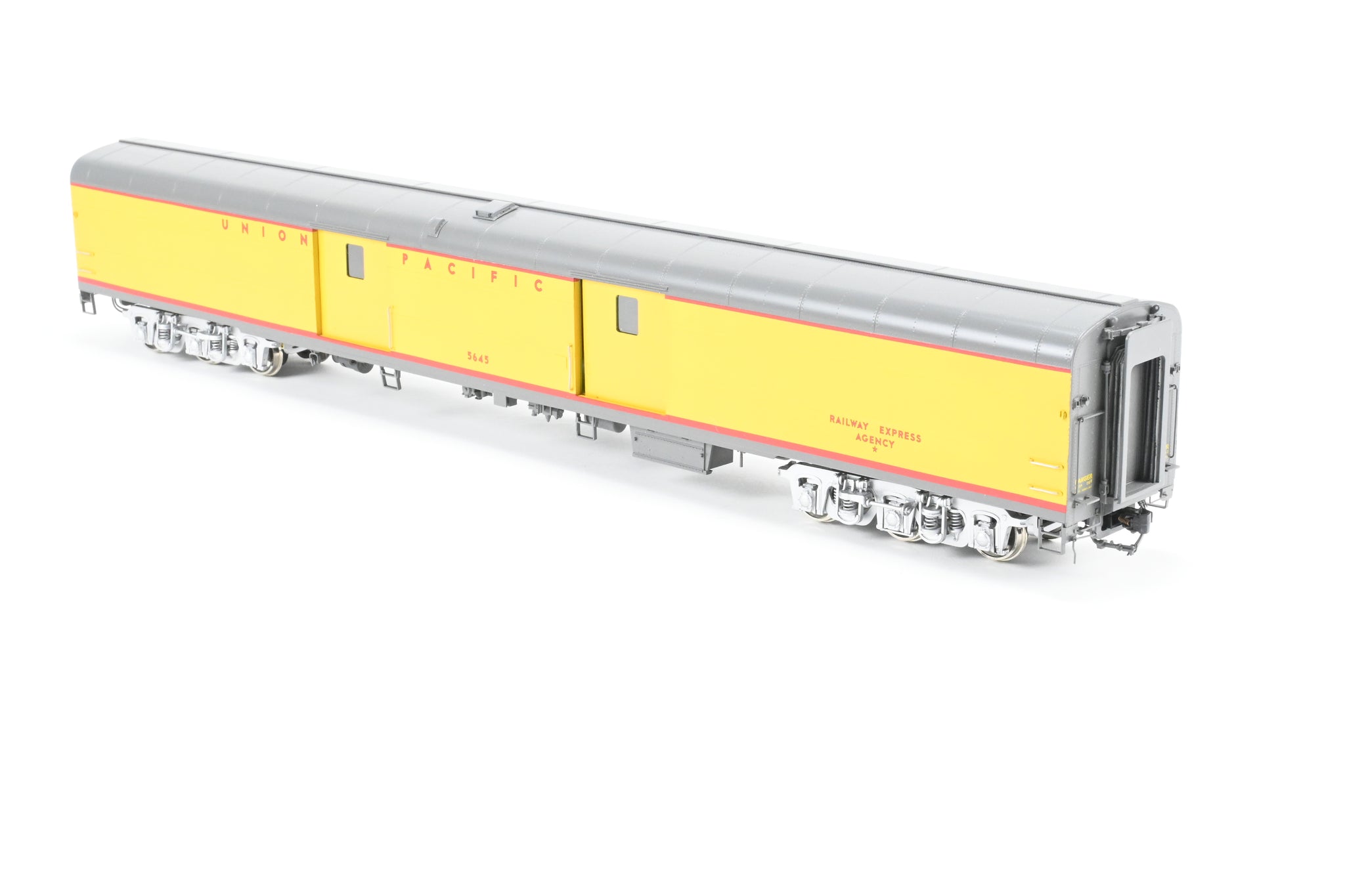 1992 run Wasatch Model Company imported model built by ACE P.M. in Korea. Box shows minimal shelf wear. Spare parts bag included. All doors open. These cars were built by AC&F in 1954, numbered 5639-5663. and were used on all of UP's "Cities" trains. No, 5645 was renumbered to No. 24413 in 1969. It was renumbered again and converted to non-revenue "Roadway" series service (MOW, etc) No. 904213 in 1970. A beautifully pro-painted model that shows virtually no wear. A harder to find model, as only 29 of this version were imported.