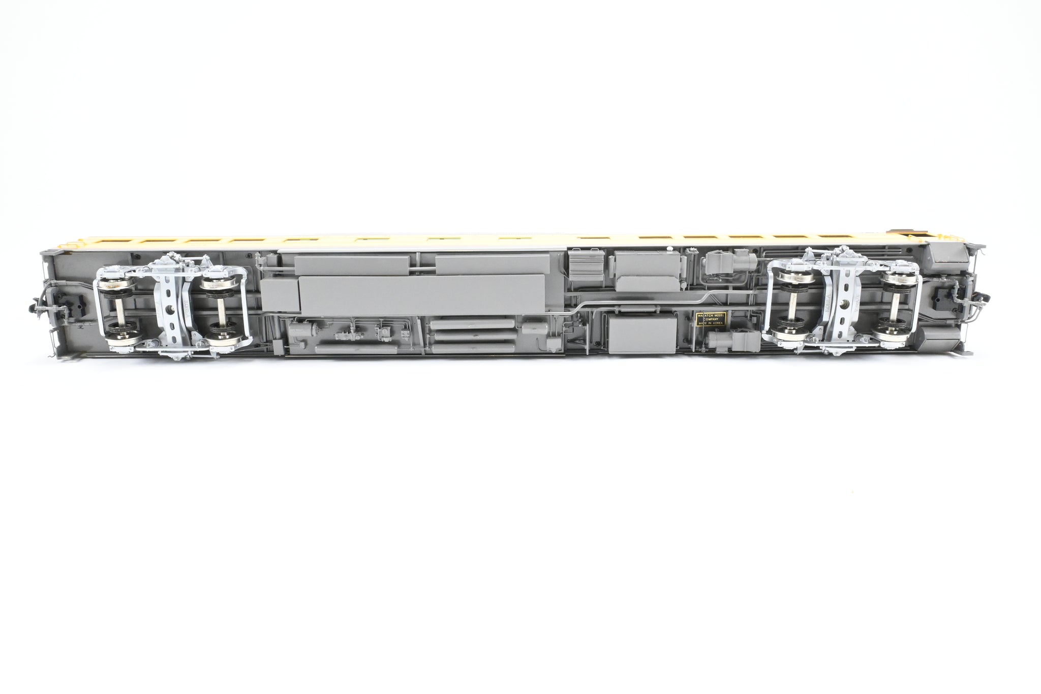 Decorated: Excellent professional paint in the Armour Yellow and Harbour Mist Grey scheme. Silver painted trucks. Road number 7009.