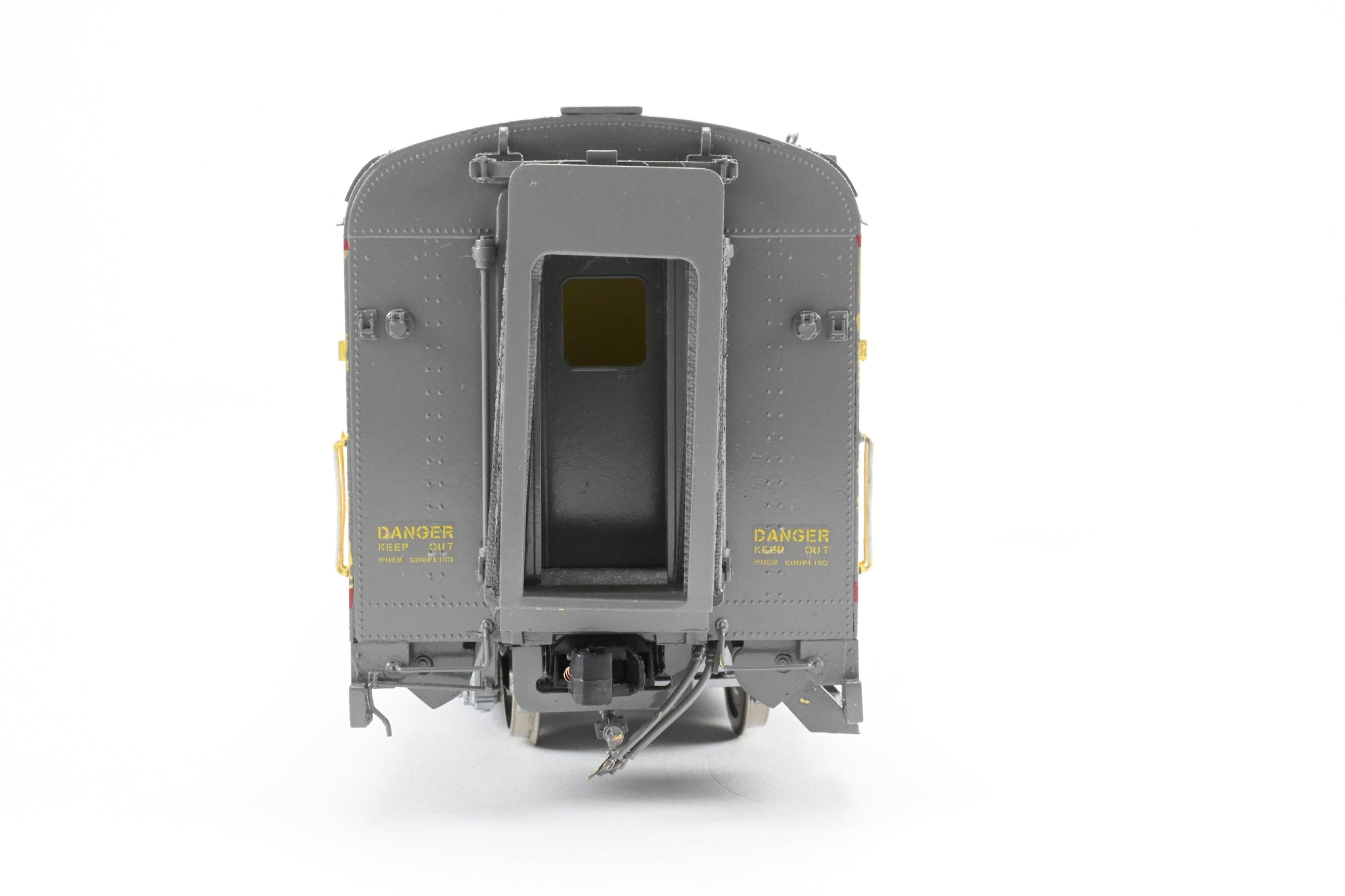 1993 run Wasatch Model Company imported model built by ACE P.M. in Korea. Box shows minimal shelf wear. No spare parts bag included. Glazing installed. All doors open. This series of 12 cars were built by AC&F in 1949-1950, with 4 double bedrooms and 12 Roomettes. They were used on all of UP's "Cities" trains. All 12 "Western Series" cars were rebuilt into "Sun Series" 11 Double Bedroom sleepers in 1965. "Western Adventure" became "Sun Cape". The 12 cars were ultimately acquired by Amtrak in 1971. A beautifully pro-painted model that shows virtually no wear. A harder to find model, as only 53 of this version were imported and fewer were professionally painted.