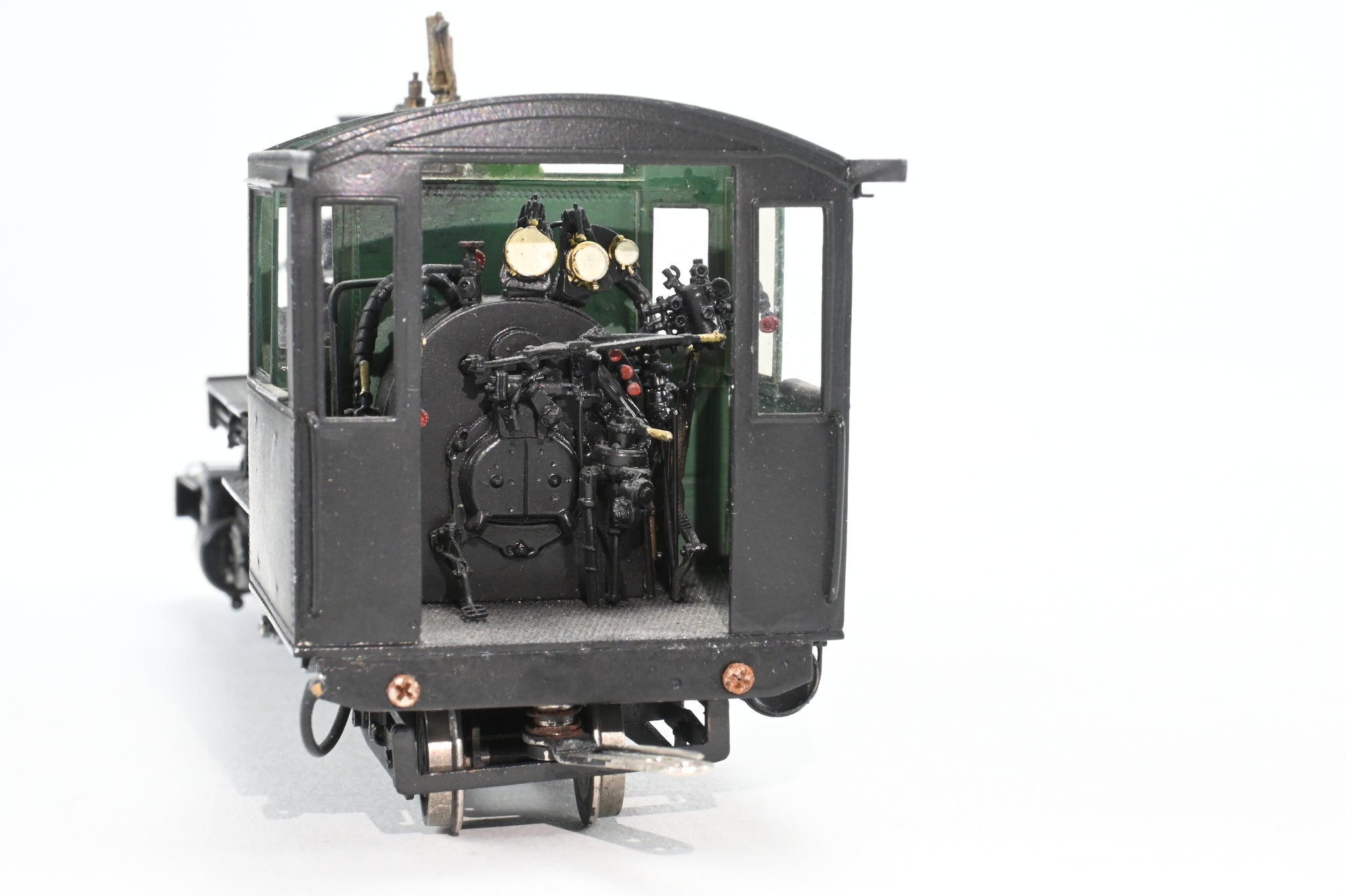 Backhead/Interior Detail: Removable cab roof reveals full backhead detail including painted dials and gauges.