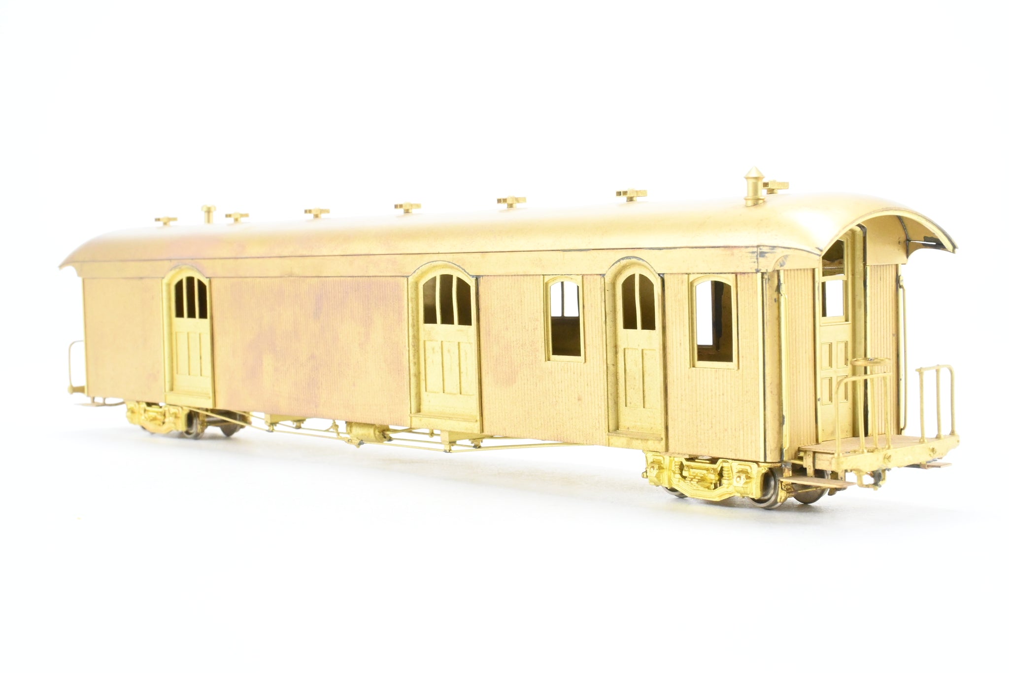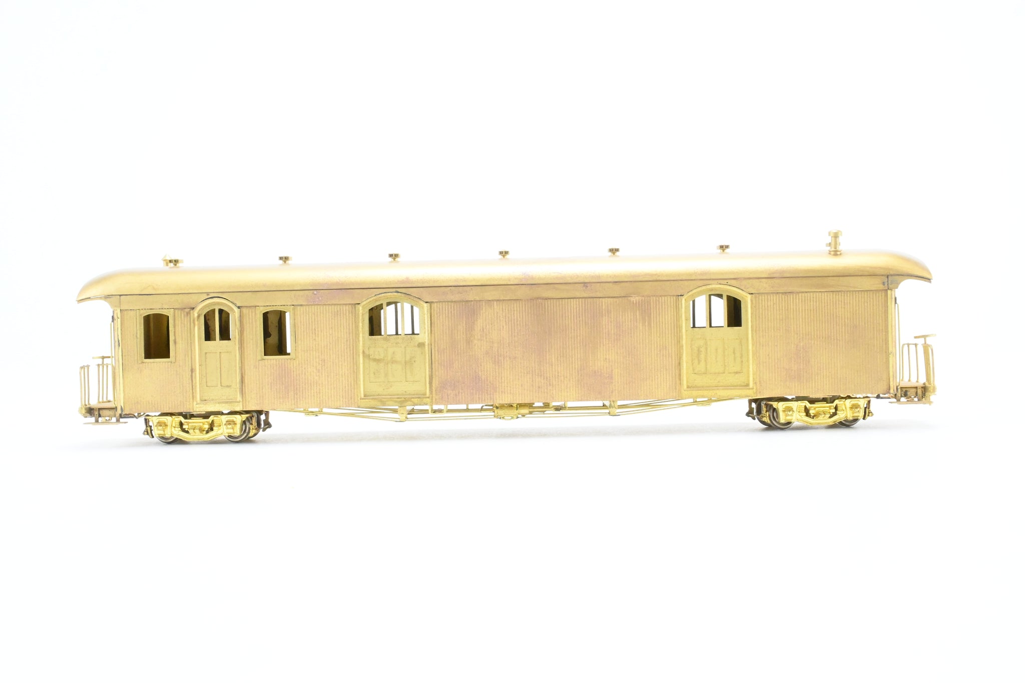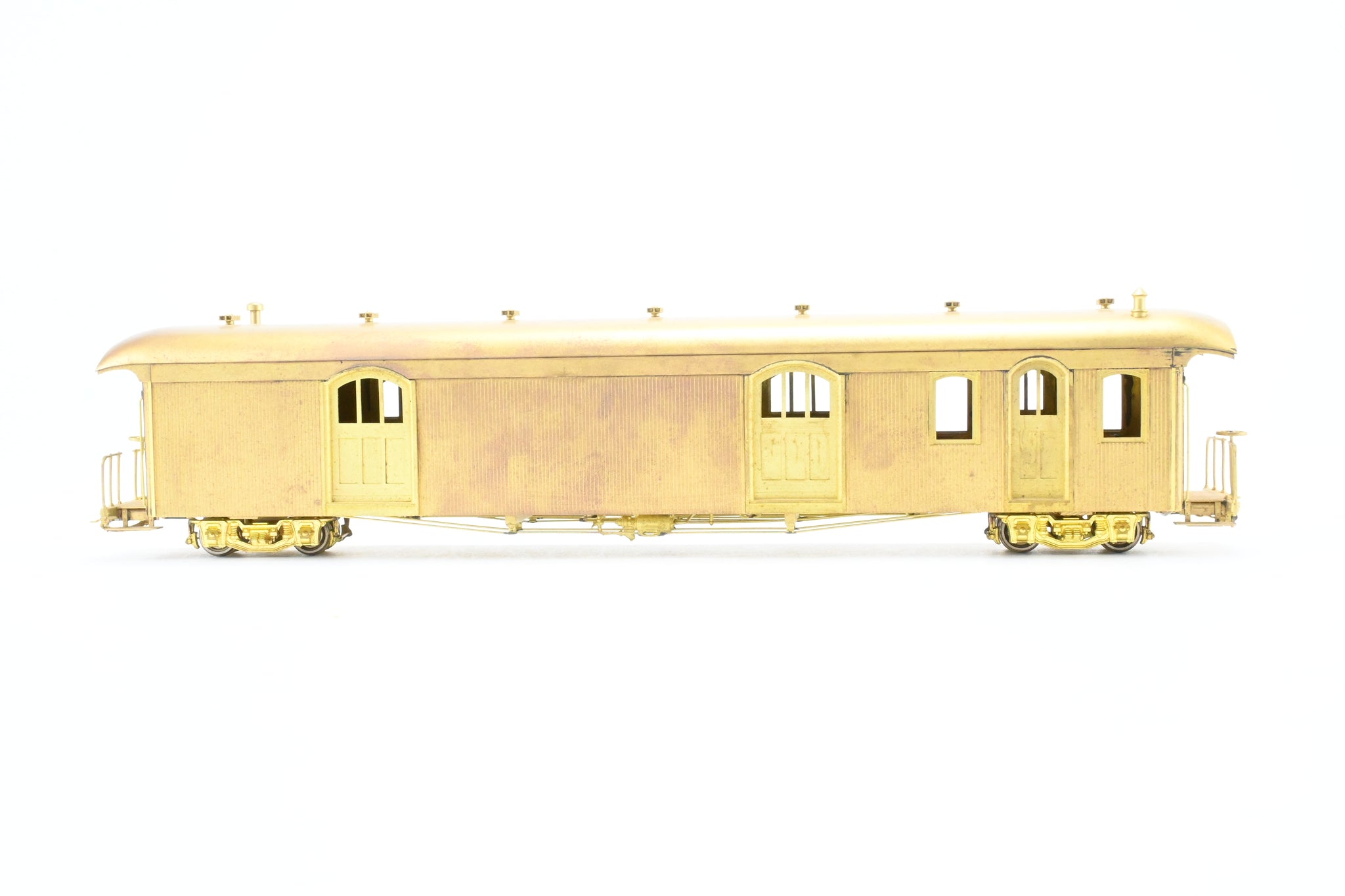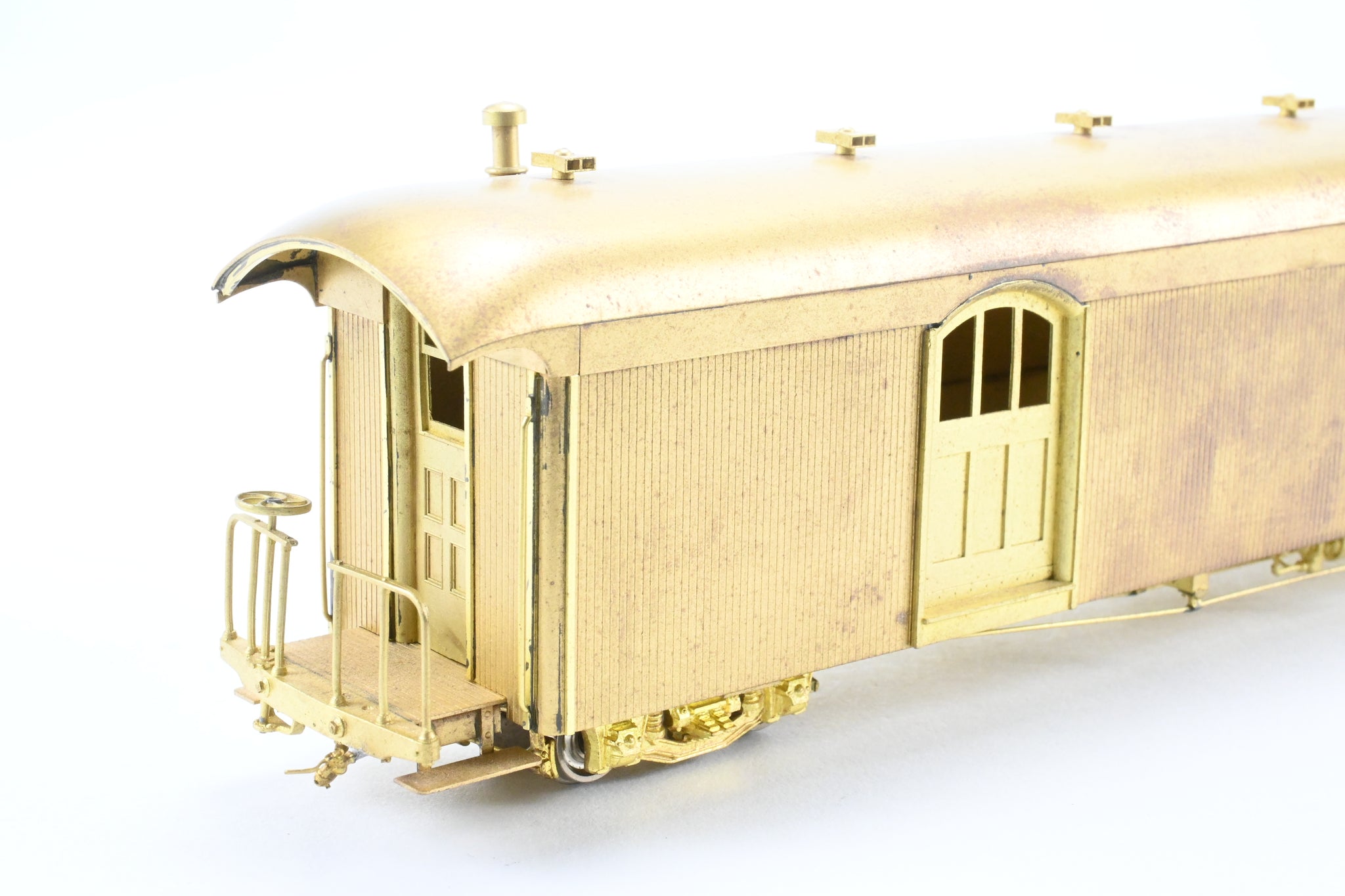 1975 run NJ custom Brass imported model made by Orion in Japan. Original box and foam show minimal shelf wear. No spare parts included. A nice model of a SR&RL baggage car. A must for any Maine "Two Footer".