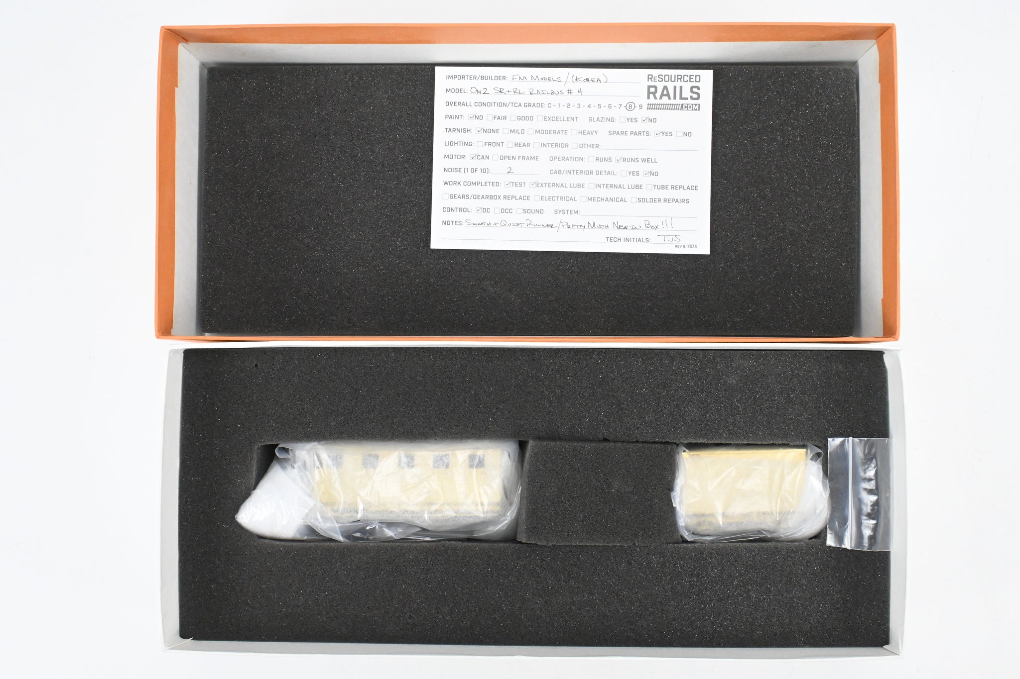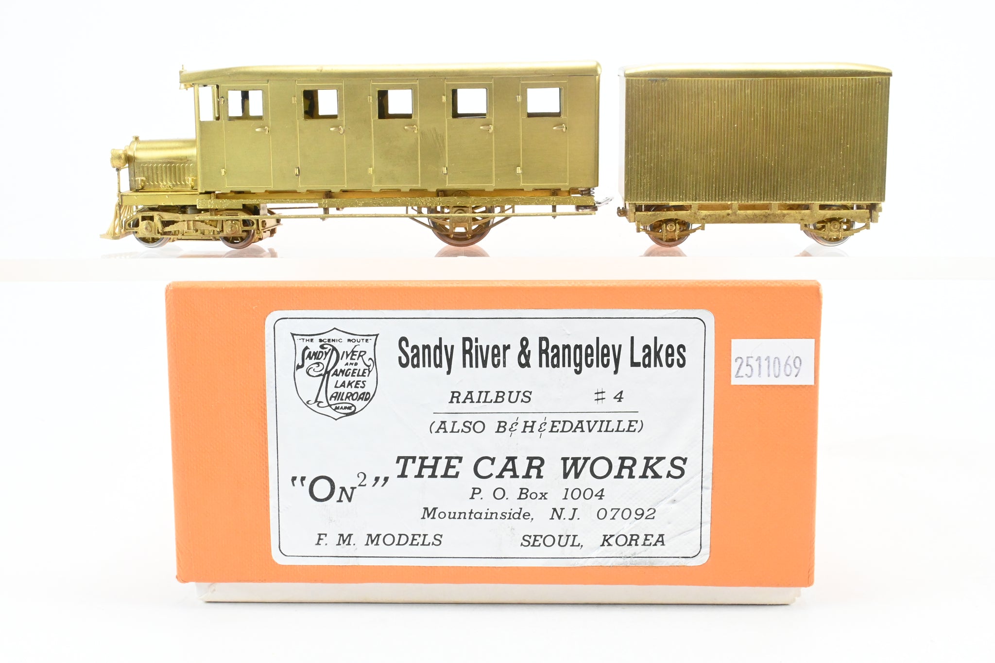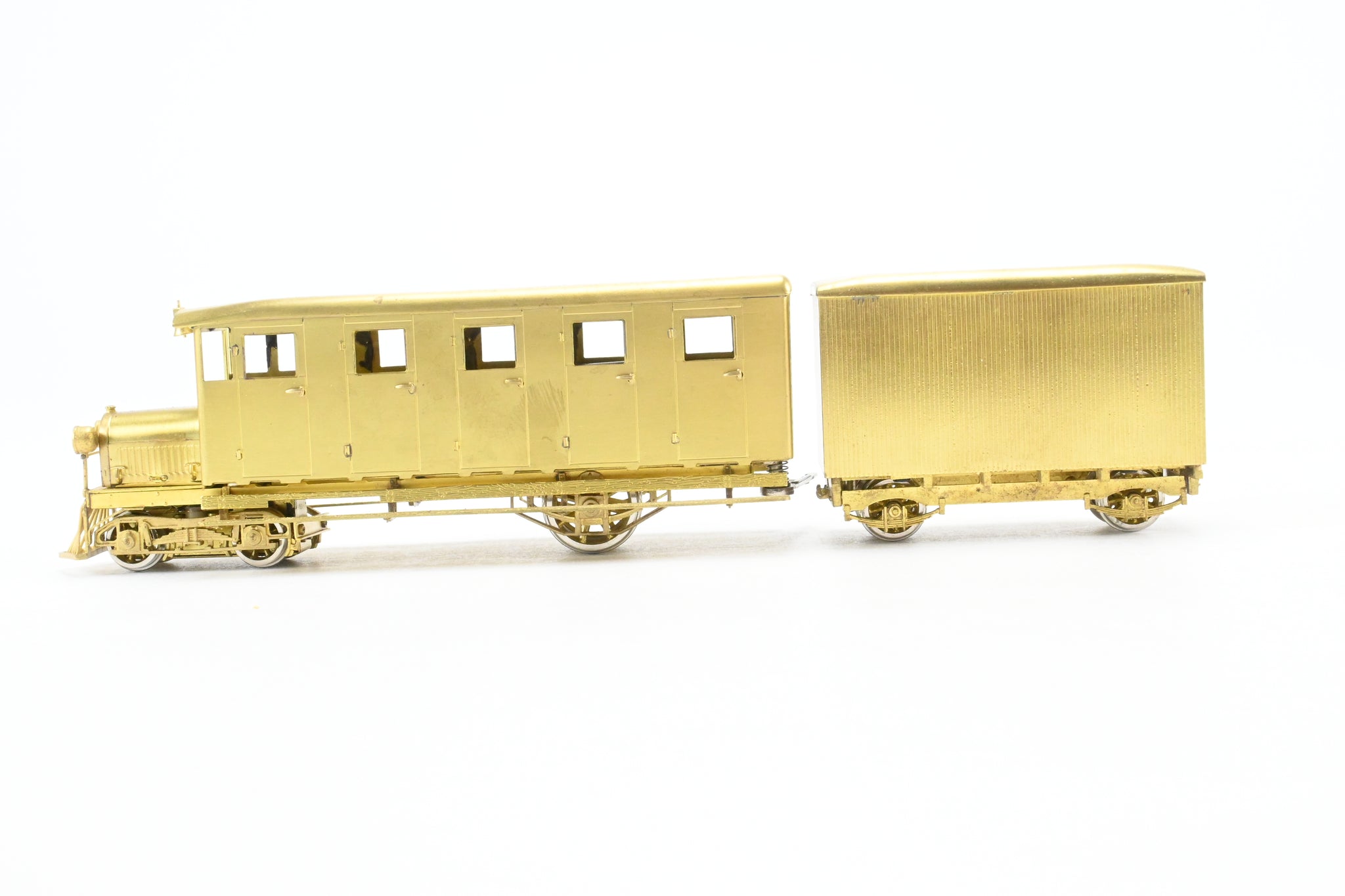 1991 run The Car Works imported model built by F. M. Models in Korea. Original box shows virtually no shelf wear. Spare parts included. Also used on the B&H - Bridgton & Harrison and later on the Edaville. A smooth and quiet runner, it's a perfect addition for the railroad of any Maine "Two Footer".